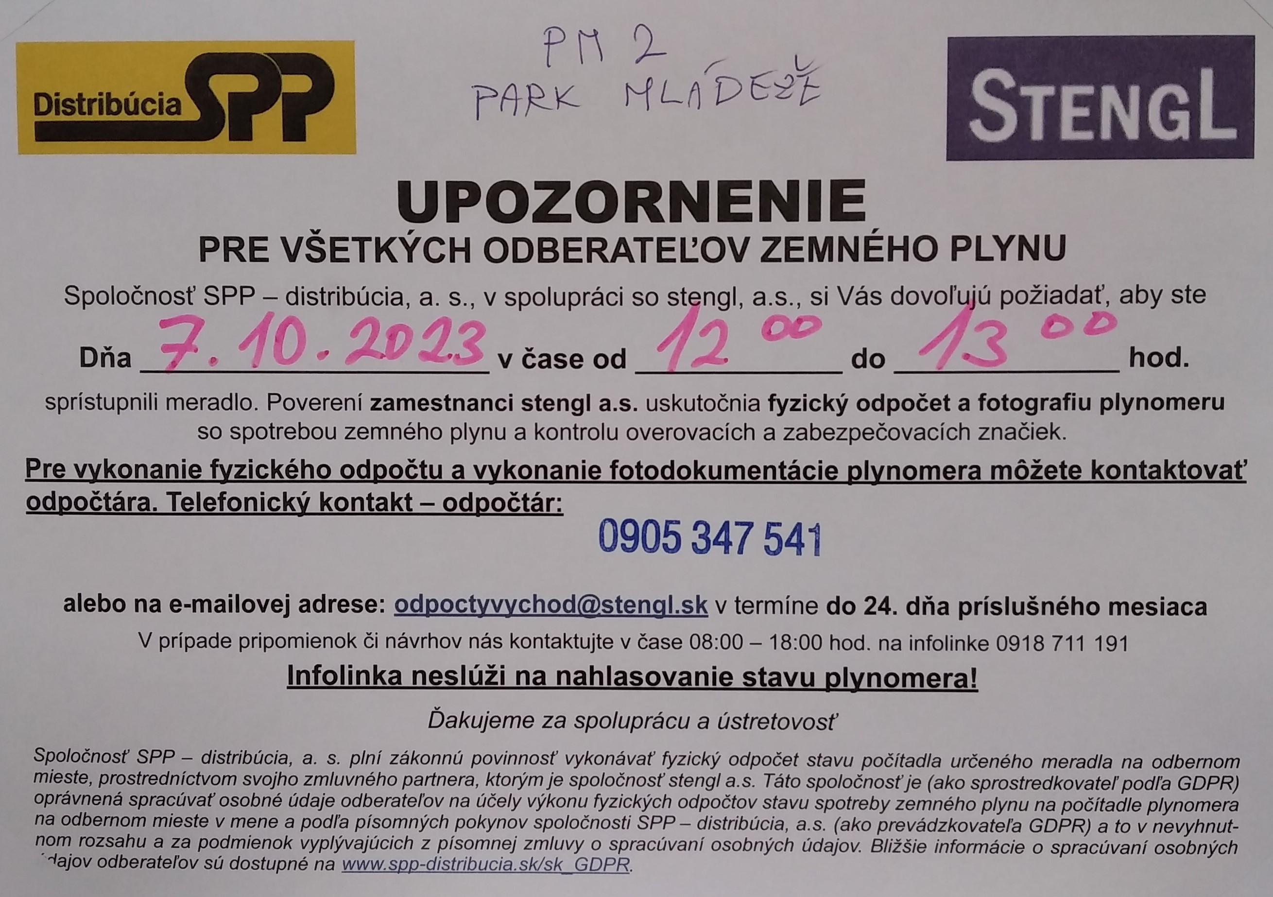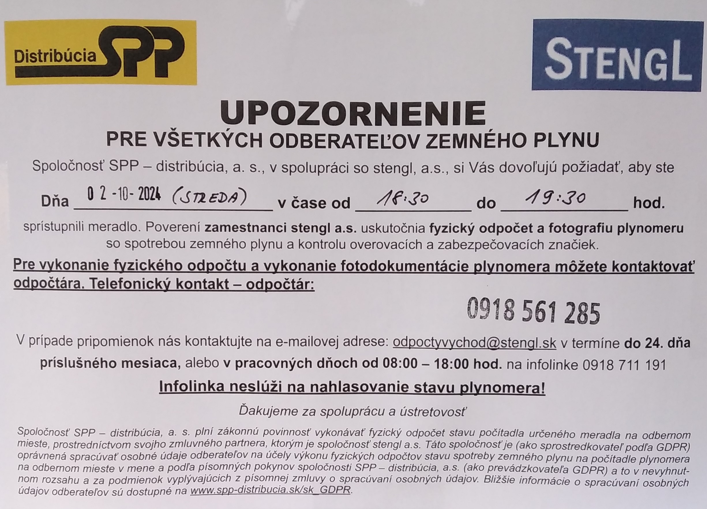 s informáciou o podmienkach možnej výmeny meračov.