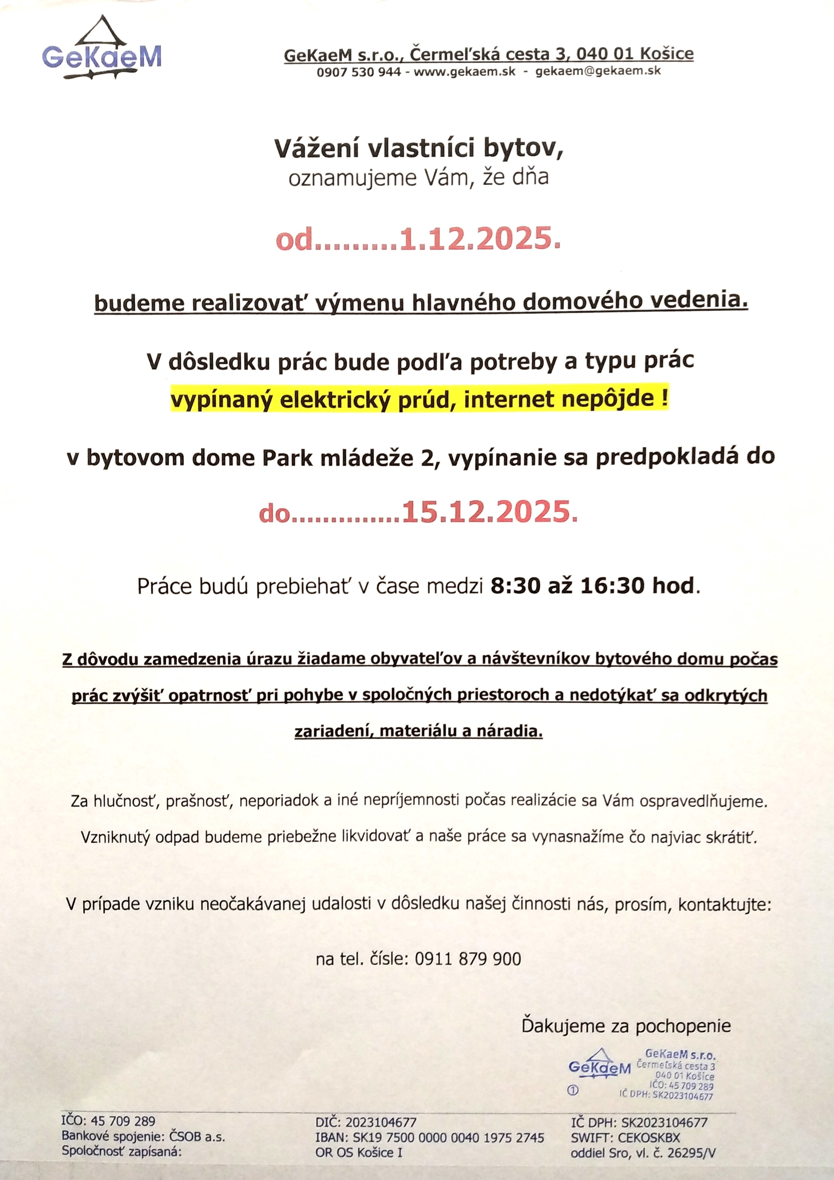 Oznam o odstávke elektriny - klikni