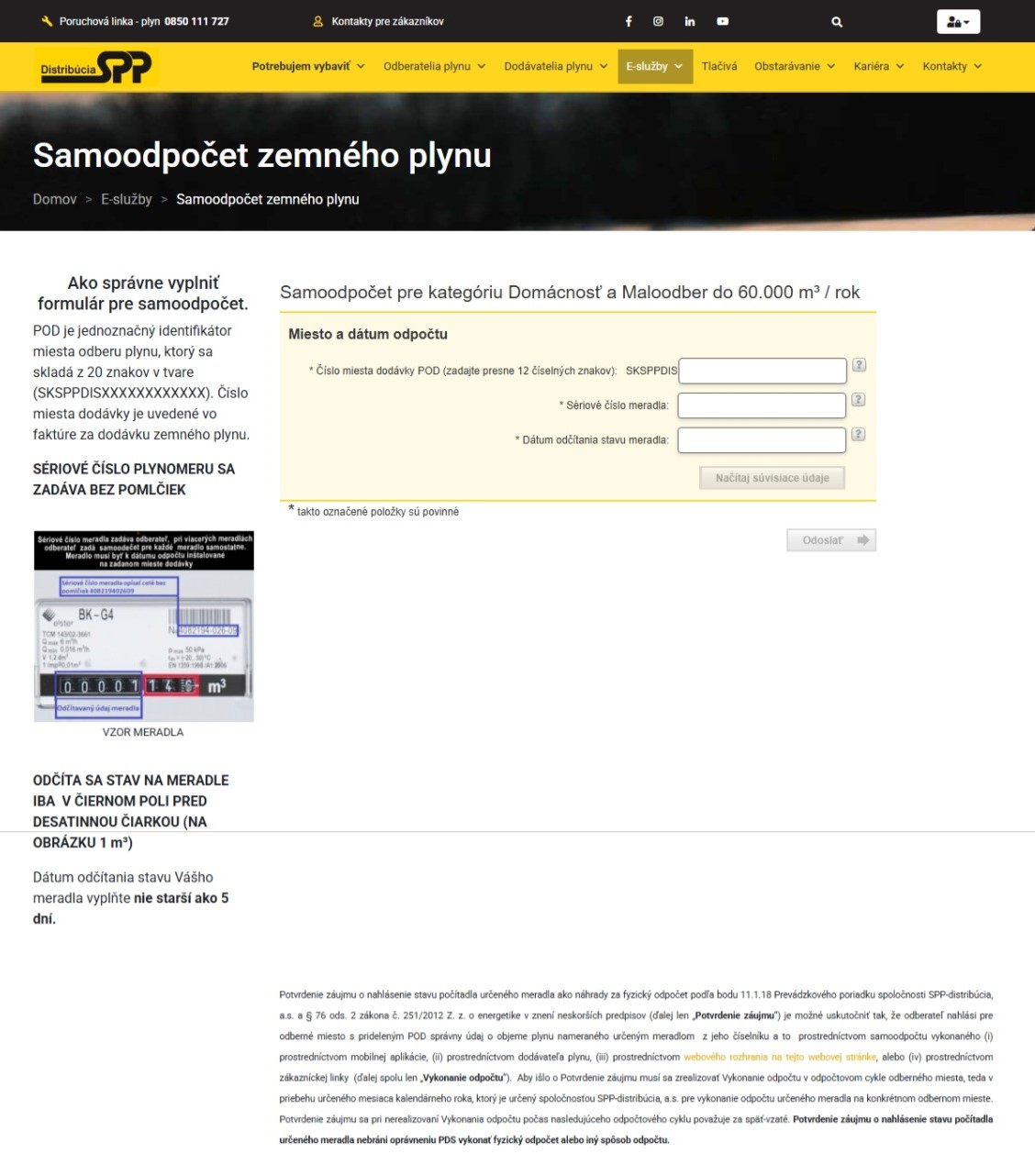 Samoodpočet zemného plynu je možné zadať pre Vaše